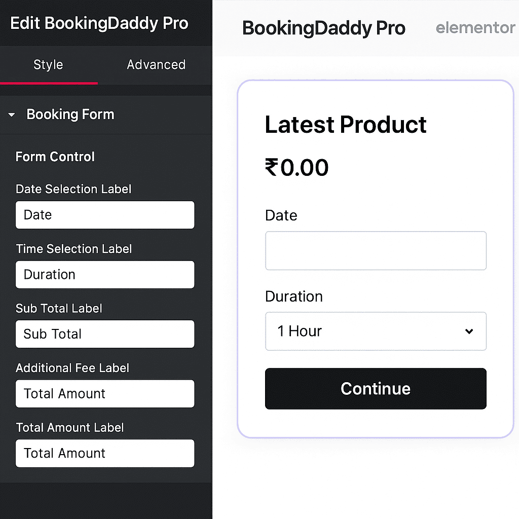 Drag and Drop Booking Element: Easily add the booking element to your page using a simple drag-and-drop interface in Elementor.