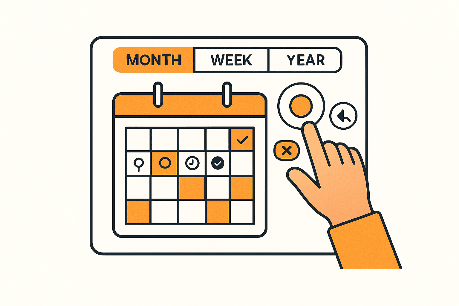 Admins can switch between day, weekly, and monthly views for better scheduling flexibility..