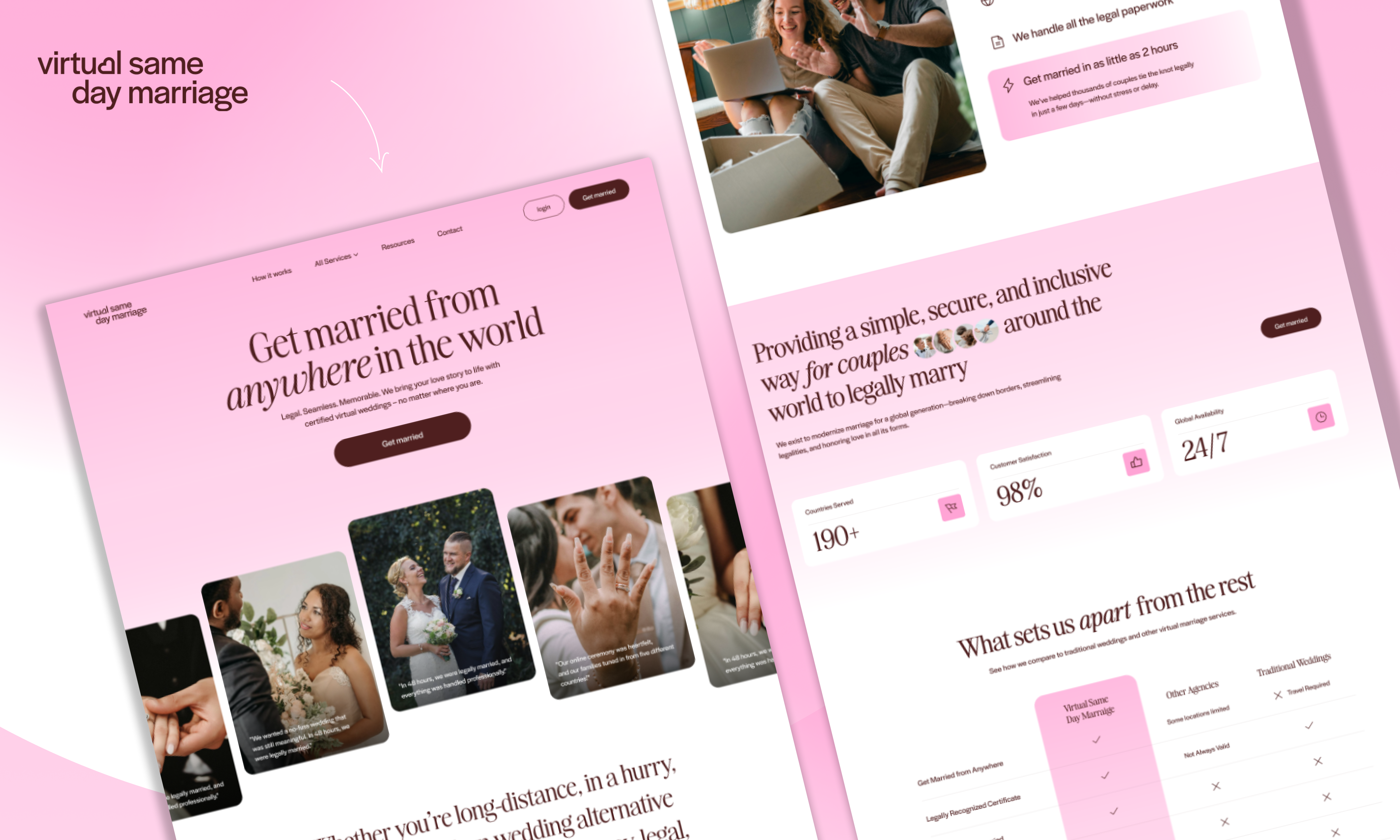 Virtual Same Day Marriage Complete Website Development A global marriage platform with custom booking flow, dashboard & Stripe payments. View Live Project Project Overview A comprehensive digital platform that revolutionizes the marriage service industry with…
