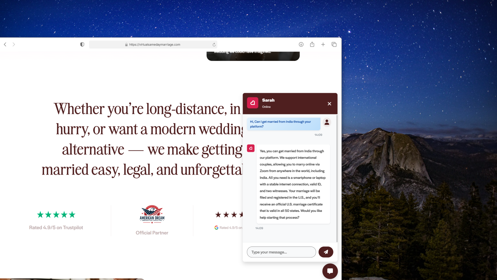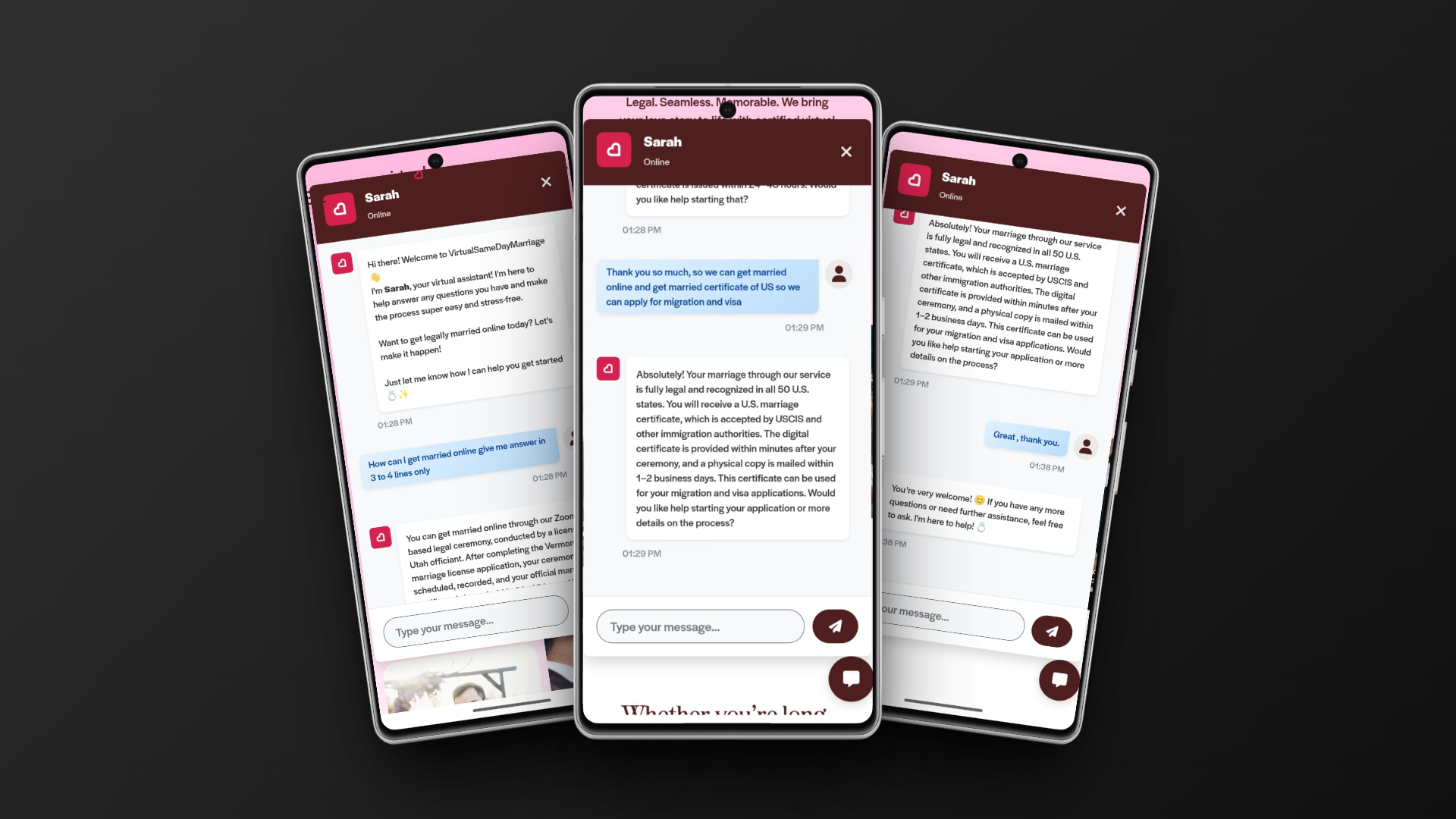 Our team developed and integrated a custom AI-powered chatbot for Virtual Same Day Marriage (VSDM), designed to provide instant, accurate, and user-friendly responses to visitor queries. The chatbot was trained with website-specific data to ensure it handles customer concerns effectively and improves user engagement. This solution helps automate support, reduce response time, and enhance the overall user experience.