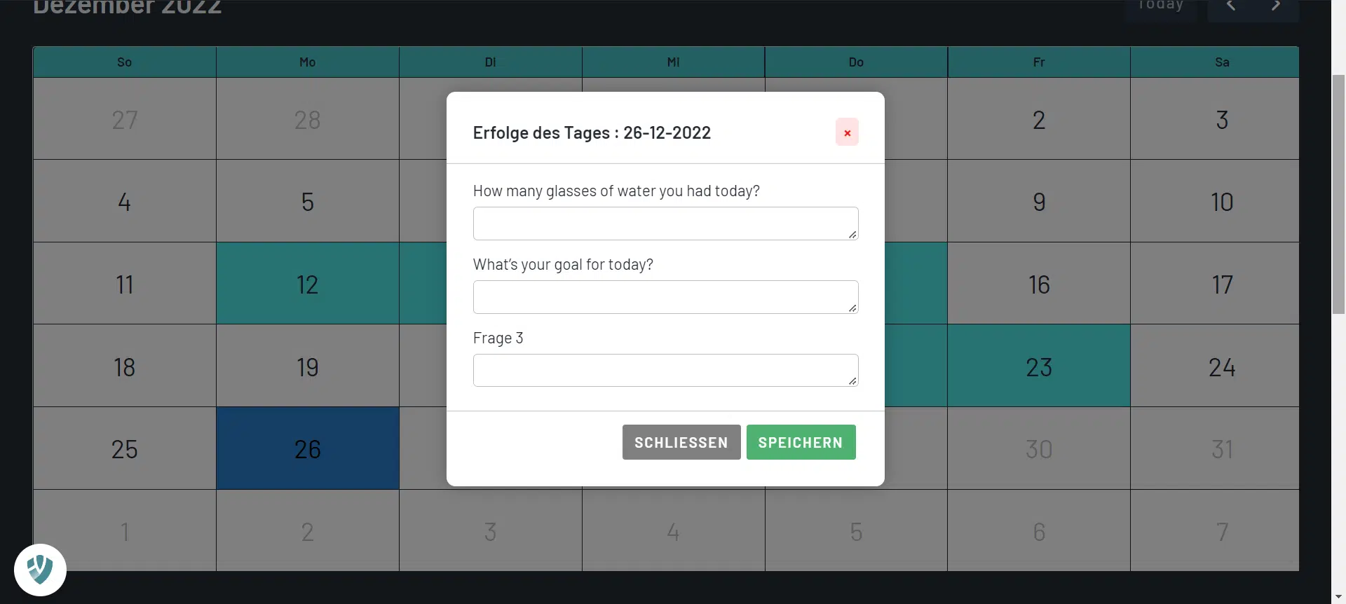 Develop a smart calendar diary plugin for a website, allowing users to add personal memos or diary notes with customizable questions defined by the admin.
