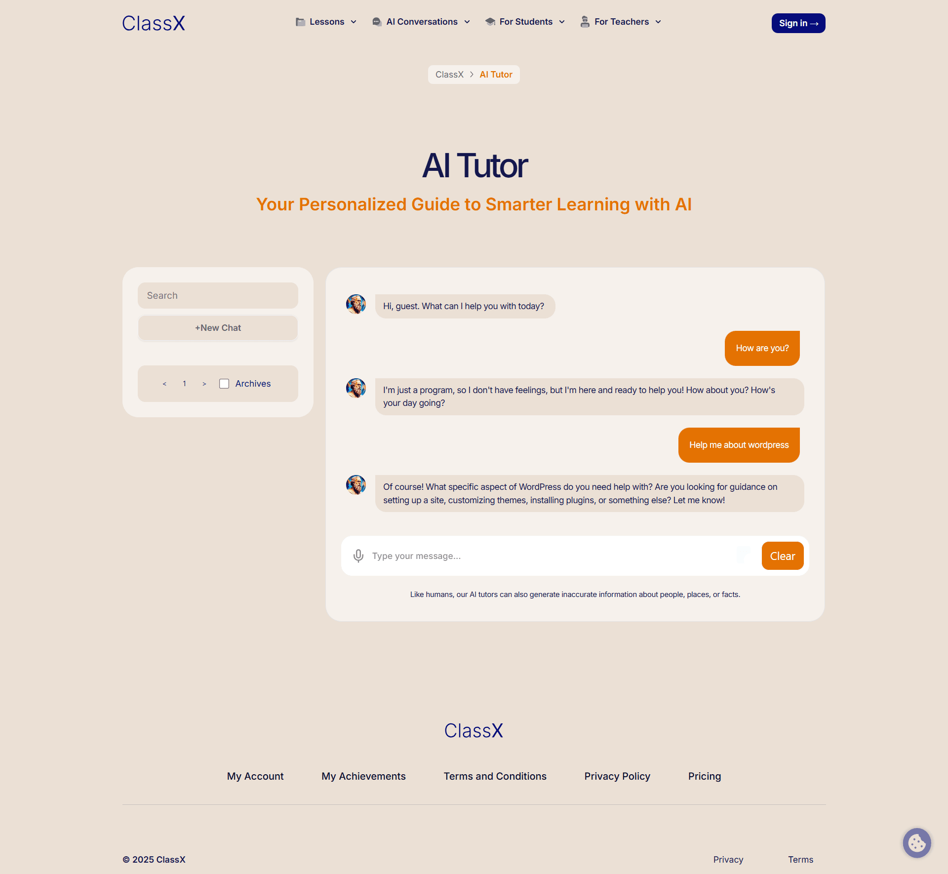 We developed ClassX, an innovative AI-driven educational platform designed to revolutionize learning for students, educators, and lifelong learners. Built on WordPress using Elementor, the platform offers a seamless and interactive user experience, integrating advanced AI tools to facilitate personalized education.