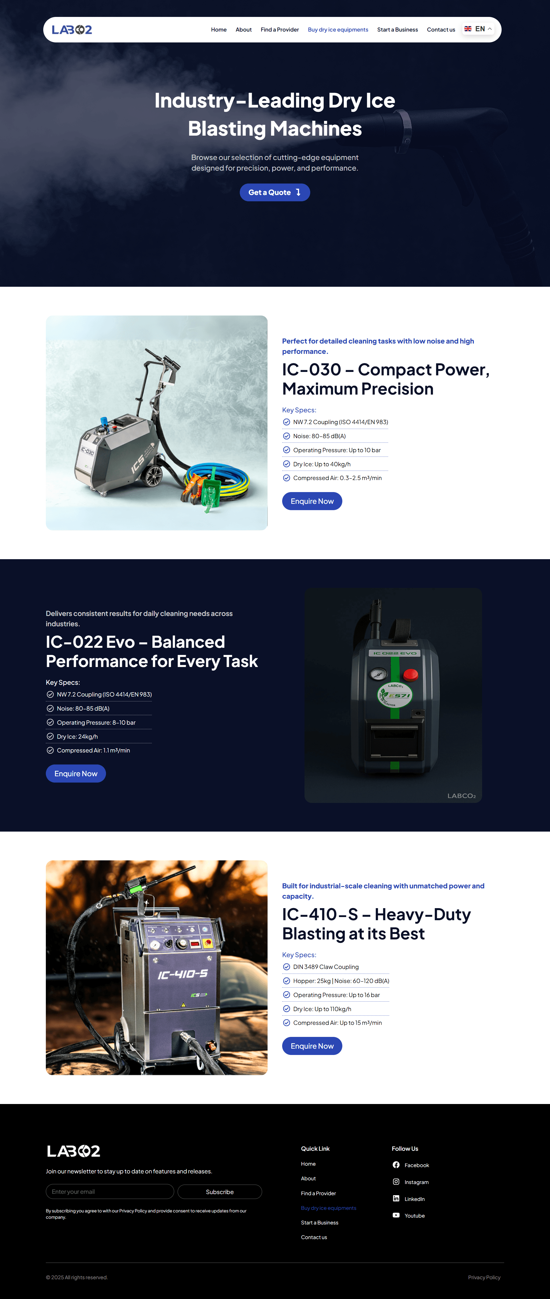 LabCO₂ is a niche platform dedicated to promoting and expanding the use of dry ice cleaning technology across various industries. The website offers a complete ecosystem for businesses looking to adopt or launch services around eco-friendly dry ice cleaning, including equipment buying, provider search, and startup guidance.