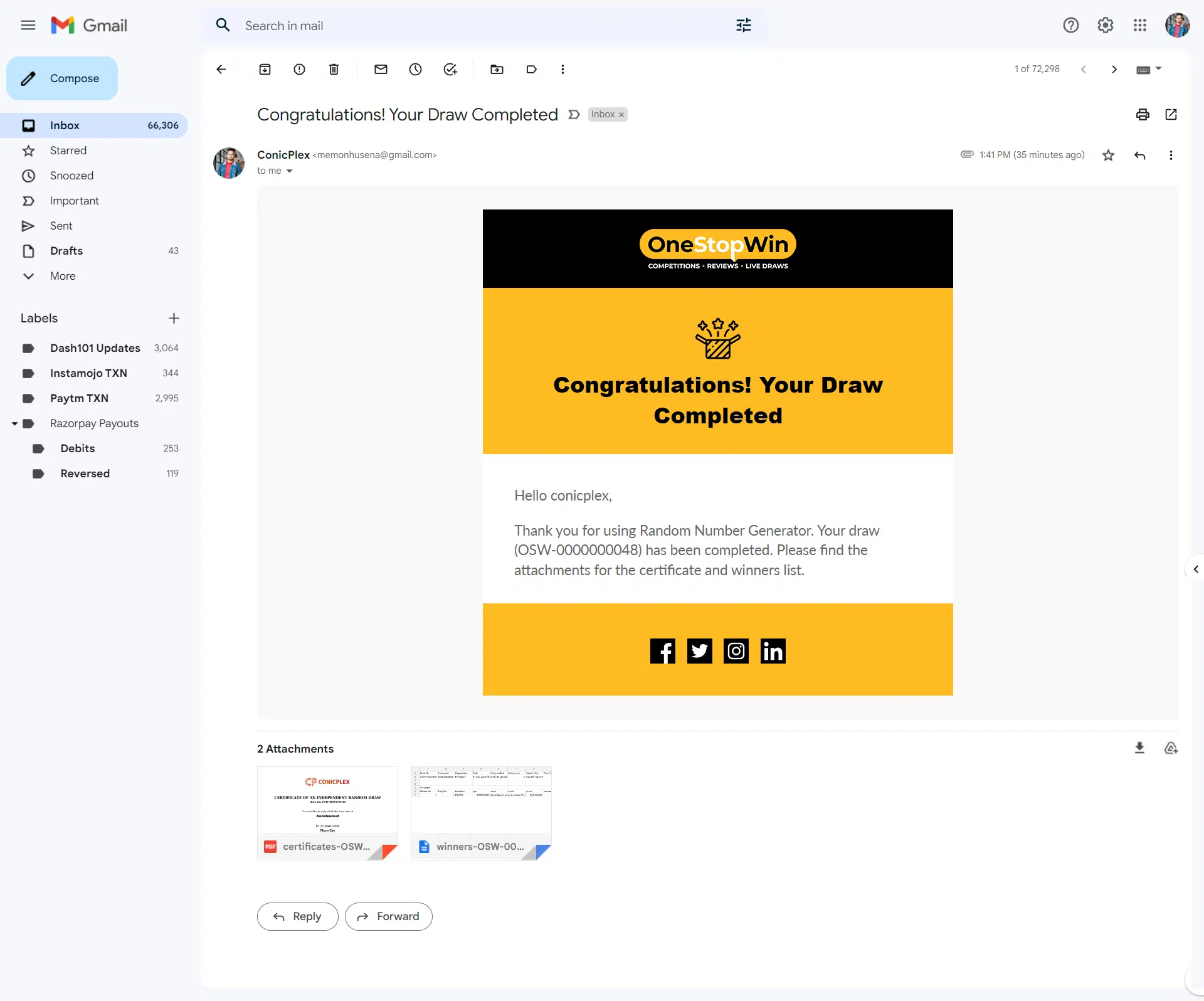 The plugin streamlined the competition management process for OneStopWin.com, providing a reliable and efficient method to generate random winners, enhancing the functionality of their competitions listing website.