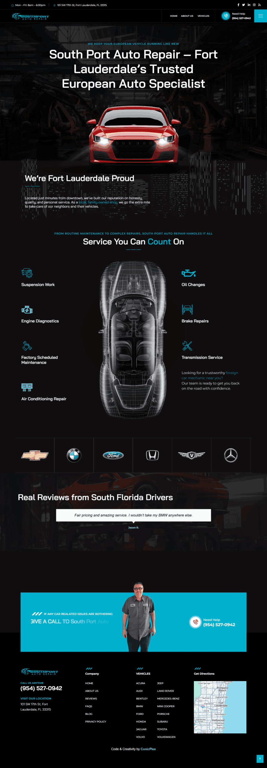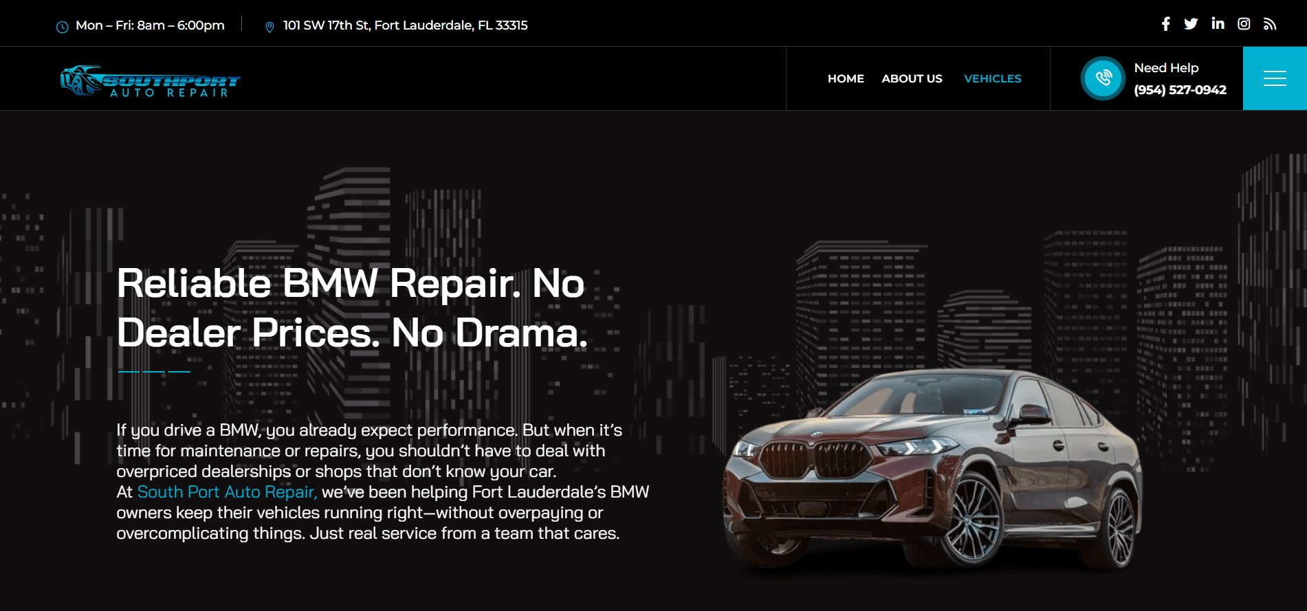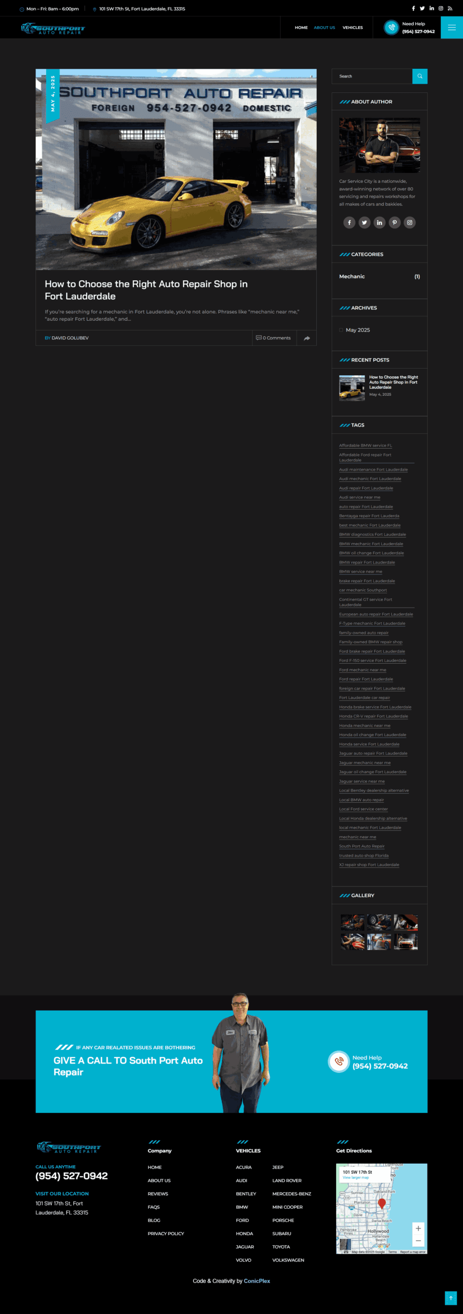 We developed a fully responsive, SEO-optimized WordPress website for Southport Auto Repair, a trusted auto service center offering high-quality repair and maintenance services in Southport. The site was designed using Elementor and built to drive more local traffic, boost credibility, and make it easy for customers to book appointments online.