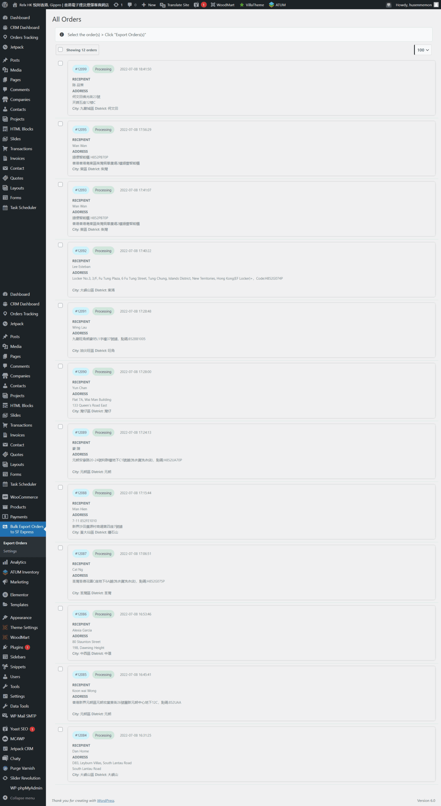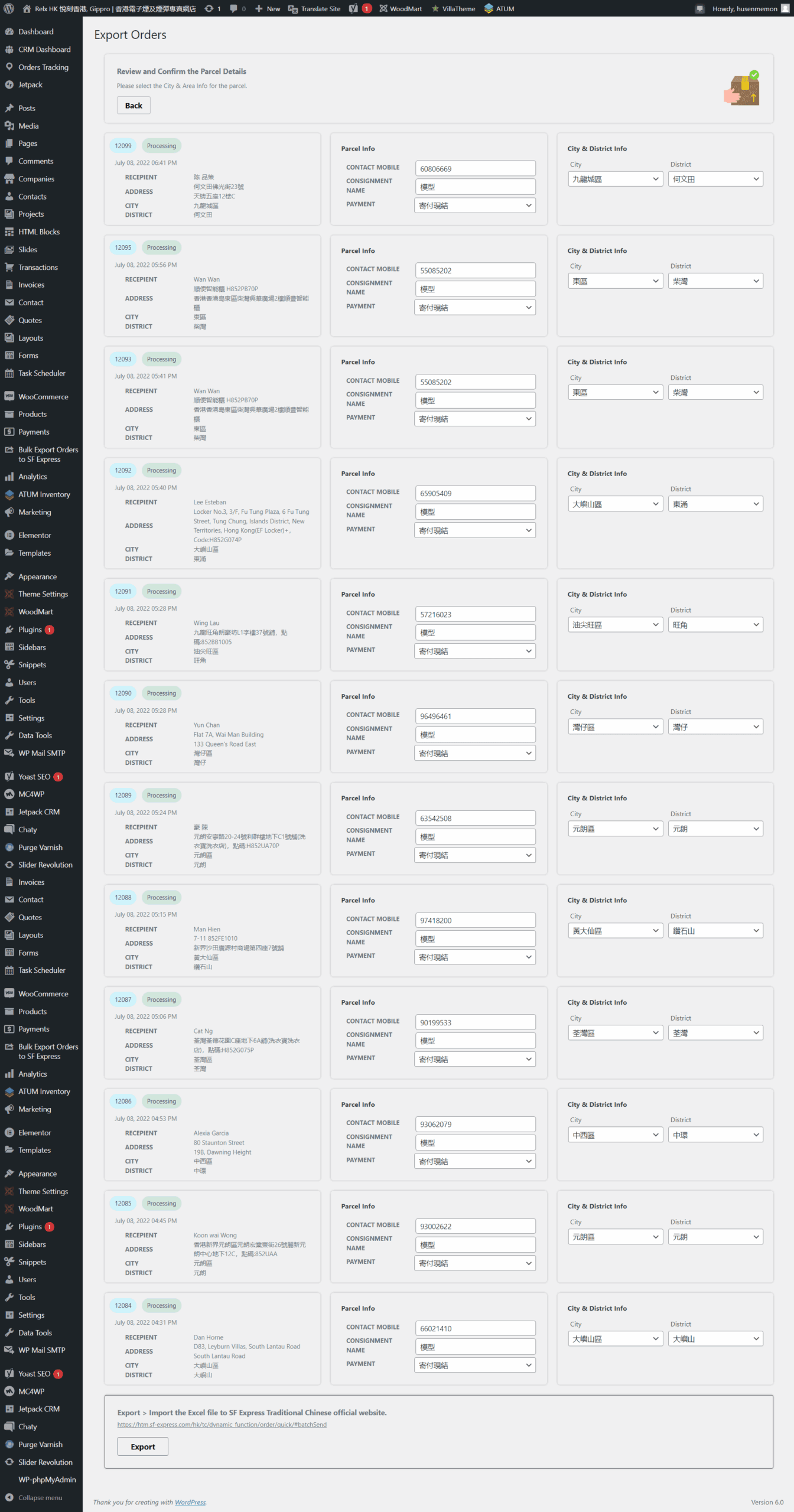 The plugin was successfully developed and rigorously tested by both the client and me on the SF Express website, ensuring seamless import of WooCommerce orders and efficient processing on their portal.