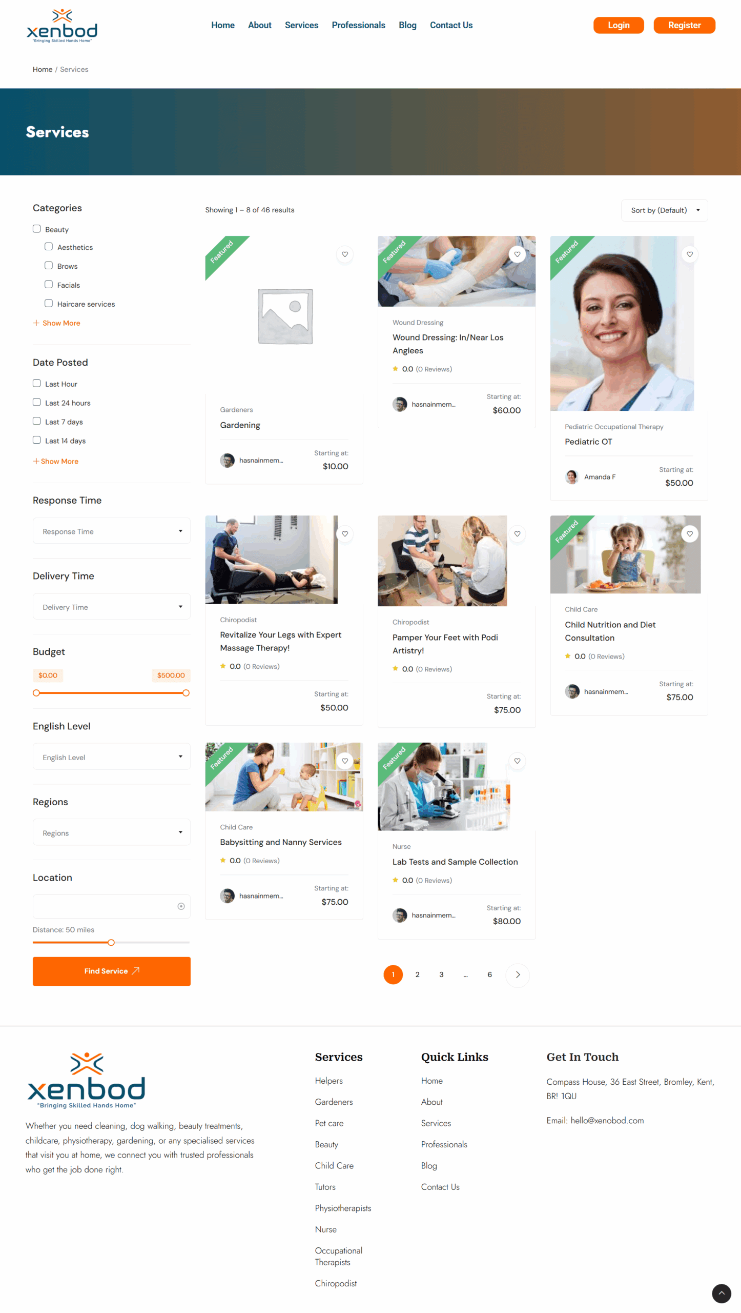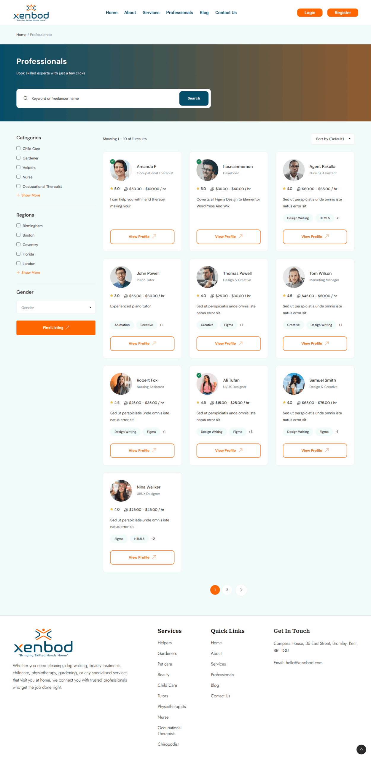 Xenbod is a dynamic freelance marketplace designed to connect service providers with clients seeking assistance in various domains, including dog walking, child care, cleaning, repairs, gardening, and more. Our team developed a user-friendly platform that enables freelancers to showcase their skills and clients to find reliable services efficiently. The website offers seamless navigation, intuitive user interfaces, and robust functionalities to support both service providers and seekers.