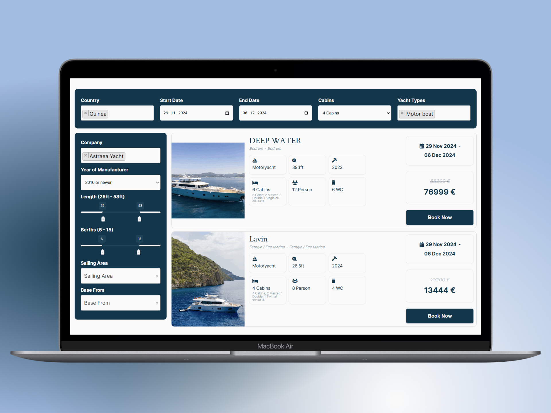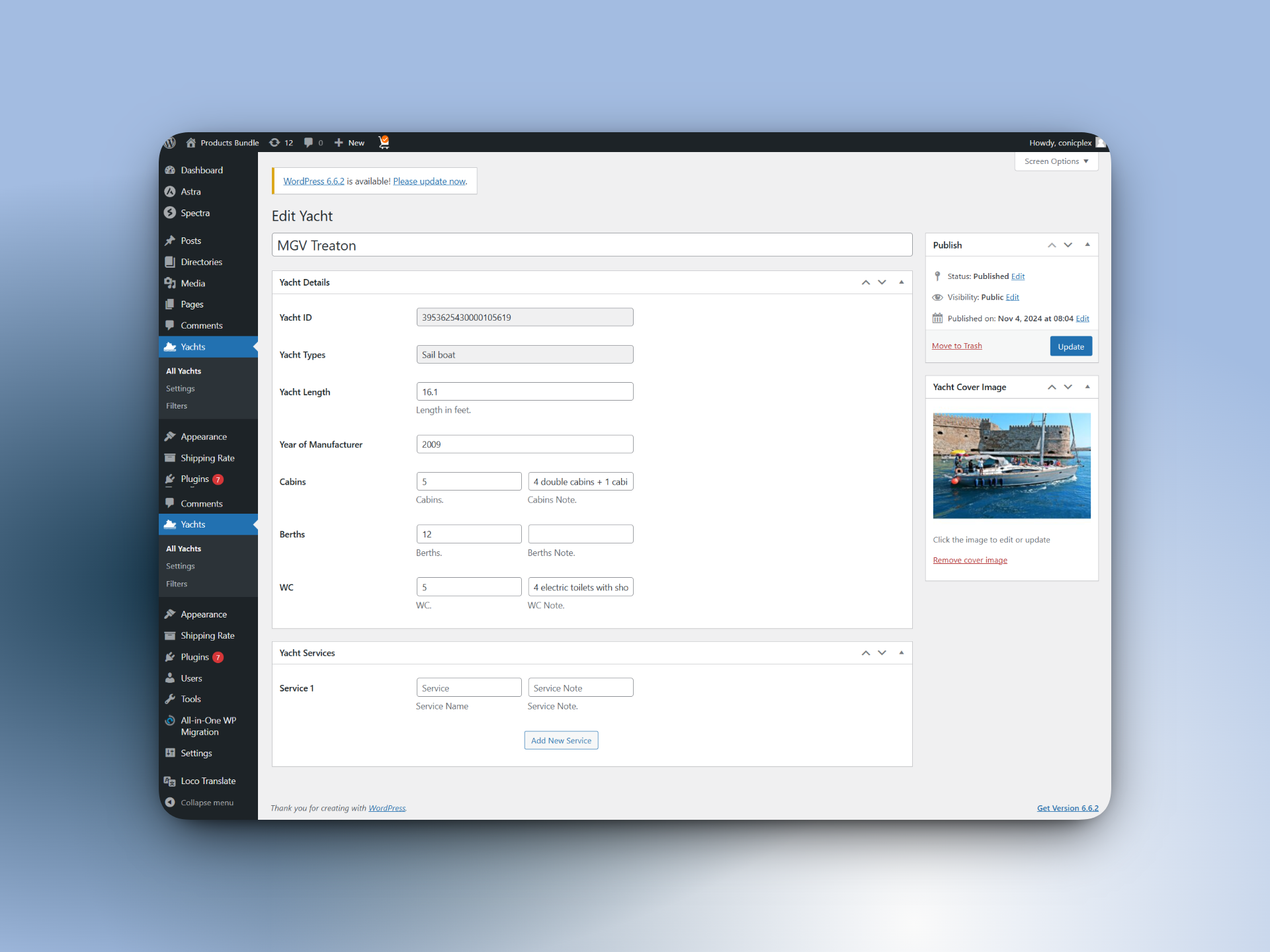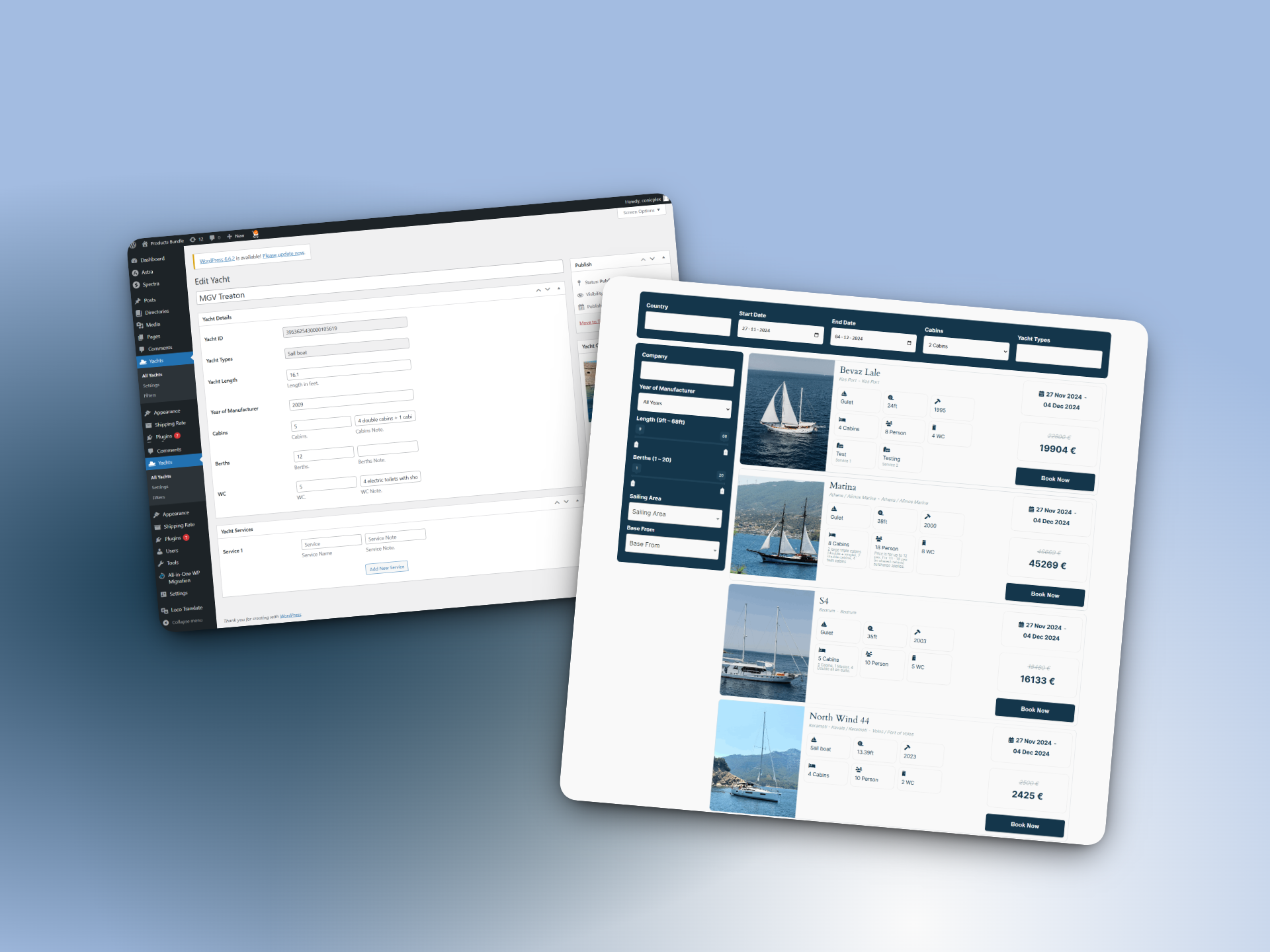 Yacht Booking System is a custom WordPress plugin developed by ConicPlex to streamline yacht rental management for charter businesses. It enables detailed yacht listings with dedicated pages, allowing users to view complete specifications such as size, cabins, year, and yacht type in a clear and organized layout.